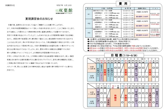 4月に開講した双葉館(そうようかん)です。中学生を対象とした学習塾です。